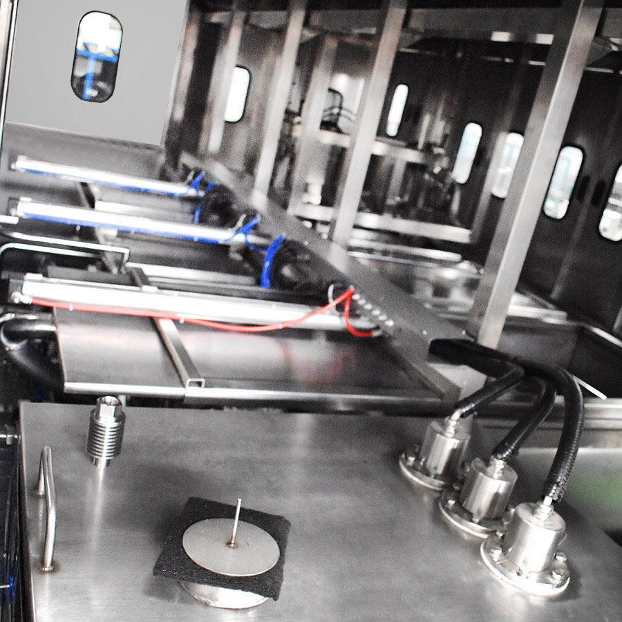 該設(shè)備有自動(dòng)上下料及轉(zhuǎn)角系統(tǒng)、超聲波清洗系統(tǒng),自動(dòng)拋動(dòng)、自動(dòng)溢流和油污分離裝置,噴淋系統(tǒng)、自動(dòng)高壓切水系統(tǒng)、自動(dòng)烘干系統(tǒng)。機(jī)械手自動(dòng)輸送系統(tǒng)采用高精度直線導(dǎo)軌配合高精度位置檢測(cè)傳感器,機(jī)械手可以準(zhǔn)確的實(shí)現(xiàn)工件的抓取和放置。自動(dòng)進(jìn)排液和自動(dòng)加溫系統(tǒng)完全實(shí)現(xiàn)了無(wú)人干預(yù),自動(dòng)運(yùn)行,很大程度上降低了工人的勞動(dòng)強(qiáng)度。先進(jìn)的霧氣處理系統(tǒng)可以將清洗時(shí)產(chǎn)生的霧氣冷凝回流,空氣經(jīng)過(guò)濾和活性炭吸附后排出。