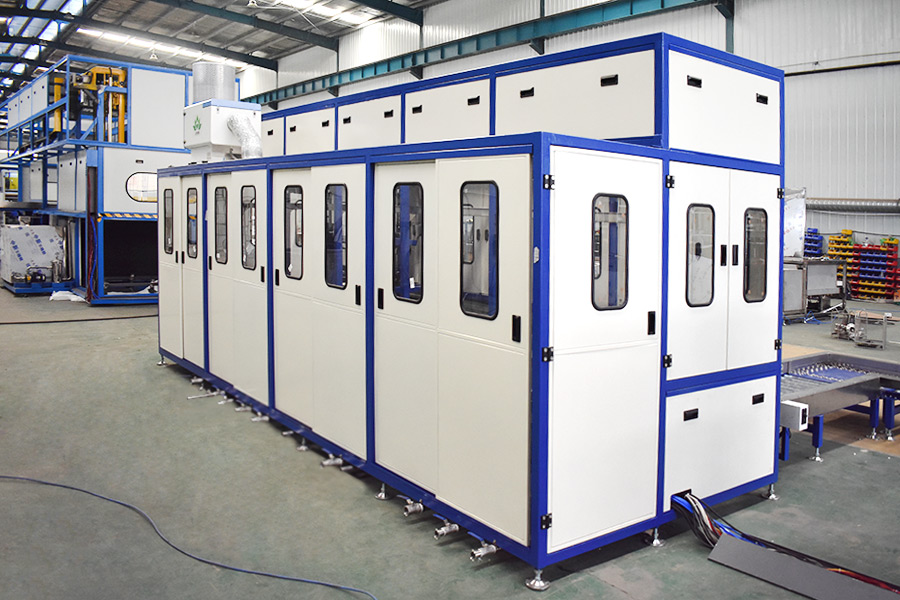 該設(shè)備有自動(dòng)上下料及轉(zhuǎn)角系統(tǒng)、超聲波清洗系統(tǒng),自動(dòng)拋動(dòng)、自動(dòng)溢流和油污分離裝置,噴淋系統(tǒng)、自動(dòng)高壓切水系統(tǒng)、自動(dòng)烘干系統(tǒng)。機(jī)械手自動(dòng)輸送系統(tǒng)采用高精度直線導(dǎo)軌配合高精度位置檢測(cè)傳感器,機(jī)械手可以準(zhǔn)確的實(shí)現(xiàn)工件的抓取和放置。自動(dòng)進(jìn)排液和自動(dòng)加溫系統(tǒng)完全實(shí)現(xiàn)了無(wú)人干預(yù),自動(dòng)運(yùn)行,很大程度上降低了工人的勞動(dòng)強(qiáng)度。先進(jìn)的霧氣處理系統(tǒng)可以將清洗時(shí)產(chǎn)生的霧氣冷凝回流,空氣經(jīng)過(guò)濾和活性炭吸附后排出。